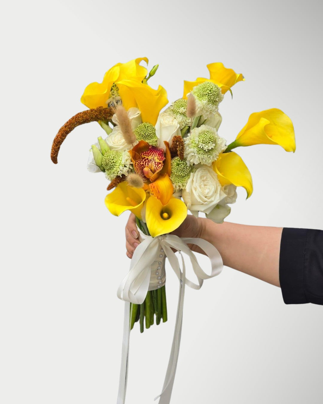 Celebrate your special day with our exquisite Bridal Bouquet, expertly crafted to complement your wedding vision. Each arrangement features premium blooms selected for their elegance and longevity, ensuring your bouquet remains stunning throughout your ceremony and reception. We understand that your wedding day is uniquely yours—that's why we offer full customization options. Whether you envision soft pastels, bold jewel tones, or a specific color palette that matches your theme, our experienced florists will work with you to create the perfect arrangement. Contact us with your colour preferences and any special requests, and we'll design a bouquet that's as individual as your love story.